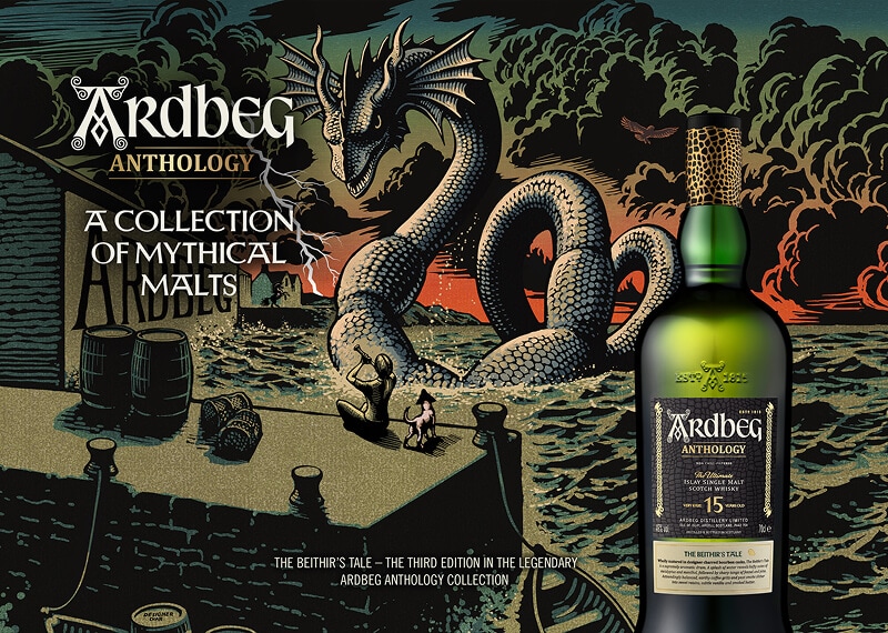 De Ardbeg Anthology Collection is een gelimiteerde serie die een breed scala aan smaken en karakteristieken laat zien. Elke editie varieert in leeftijd, vatrijping en smaakprofiel, compleet met een eigen verhaal. Geïnspireerd door legendarische ontmoetingen met mythische Islay-wezens, rijpt deze bijzondere collectie in unieke vaten. Na eerdere uitgaven zoals The Unicorn’s Tale en The Harpy’s Tale, vervolledigt The Beithir’s Tale deze felbegeerde serie, geliefd bij verzamelaars wereldwijd. 15 jaar gerijpt in speciaal ontworpen gebrande bourbonvaten, die luchtgedroogd, zwaar getoast en daarna licht gebrand zijn. Het aroma is verleidelijk en betoverend, met een mondgevoel dat soepel over het gehemelte glijdt en een afdronk die lang blijft hangen. The Beithir’s Tale is opnieuw een zeldzame en blijvende geest in de Ardbeg Anthology Collection.