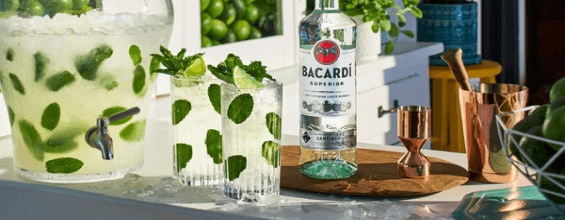 Bacardi is in 1862 in het leven geroepen door Don Facundo Bacardí, na diens 10-jarige zoektocht naar het recept voor de perfecte rum. Inmiddels s'werelds meest bekroonde rum. De onderscheidende tonen van vanille en amandel worden ontwikkeld in wit eikenhouten vaten en gevormd door een geheime mix van houtskool voor een kenmerkende zachtheid. Voornaamste serveerwijzen: Mojito, Daiquiri, BACARDÍ Carta Blanca & cola.