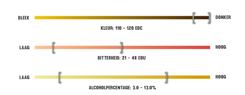 Smaakwijzer voor dubbel-bieren, op basis van kleur, bitterheid en het alcoholpercentage.
