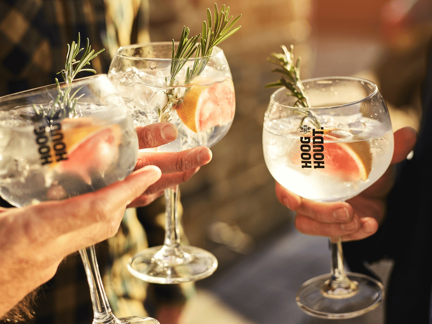 - Doe de frambozen en muntbladjes in een tumbler en stamp ze fijn. Voeg de Hooghoudt Aged 6 , limoensap en suikersiroop toe. Roeren in het glas, voeg ijsblokken toe en top het glas af met sodawater of prosecco. Garneer met verse framboos en takje munt. De zomer in je glas!