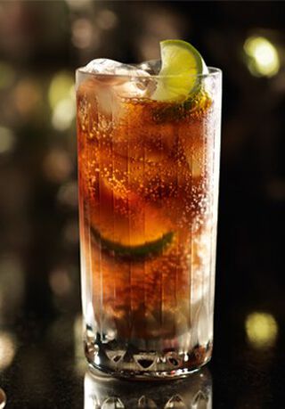- Vul het glas verder met twee delen (100 ml) ijskoude cola, roer een rondje en serveer.