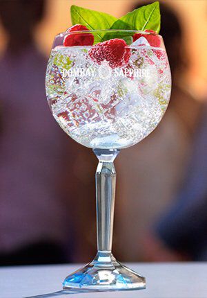- Doe er 50 ml Bombay Sapphire Gin bij en vul aan met Elderflower tonic (of Lavander/Orange Blossom).
