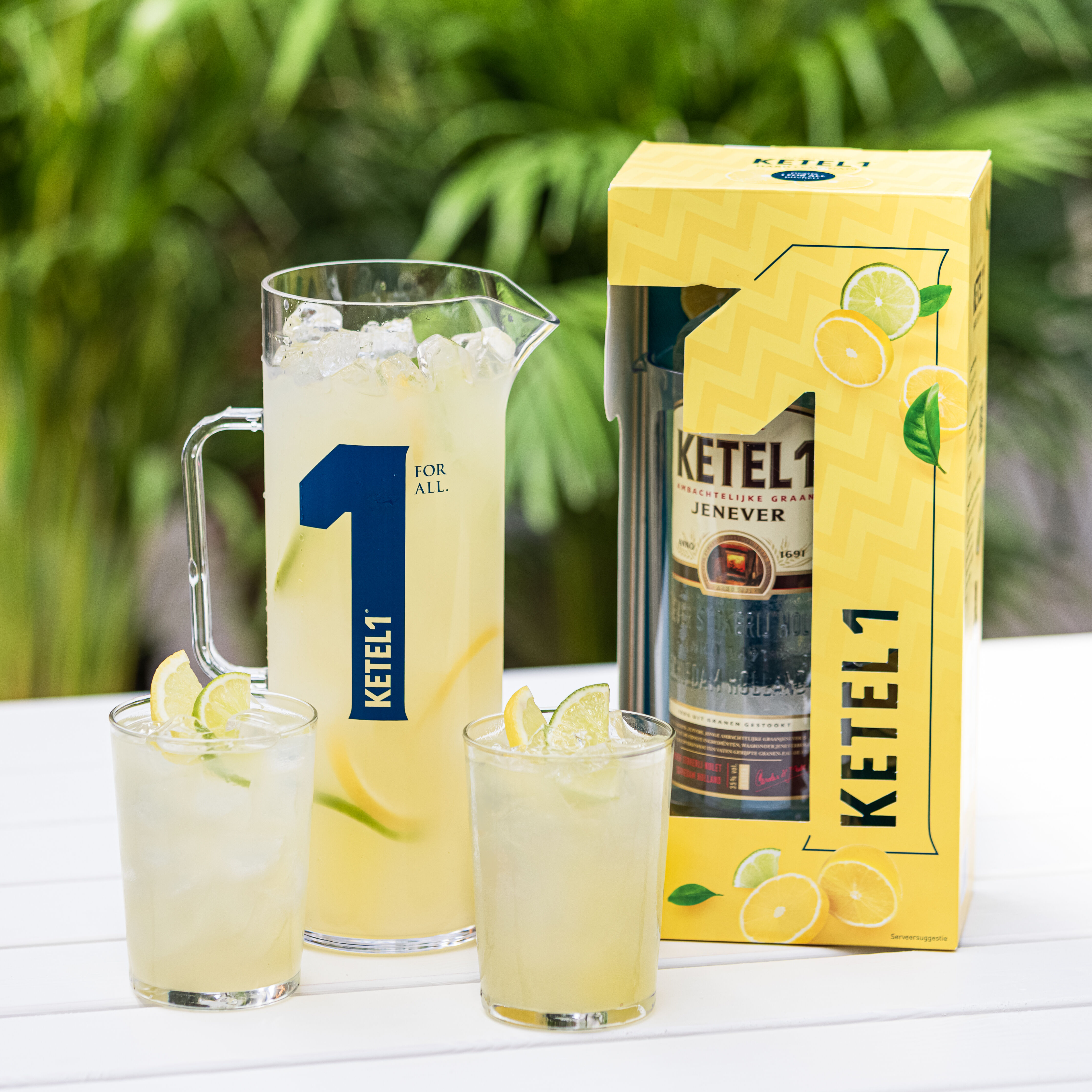 Wist je dat KETEL 1 niet alleen heel lekker is puur, maar dat je er juist ook prima mee kunt mixen? KETEL 1 Hard Lemonade is een zonnige, verfrissende mix met KETEL 1 Jenever, citroensiroop, bruisend water, een schijfje citroen en limoen en lekker veel ijs. Supermakkelijk om thuis zelf te maken in losse glazen óf in de handige pitcher om te delen met vrienden.