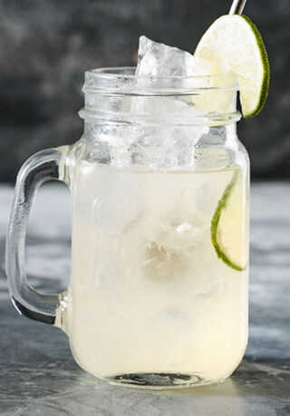 - Knijp een limoenpartje uit boven het glas en laat het erin vallen.