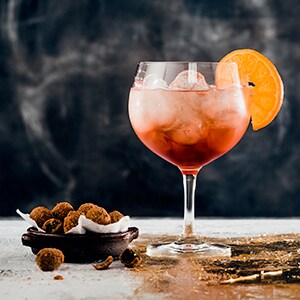 - Vul een rocksglas met ijsblokjes.