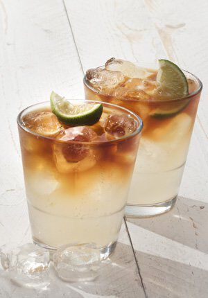 - Vul het glas vervolgens met 100 ml Gosling's Gingerbeer, roer en garneer met 1 partje limoen.