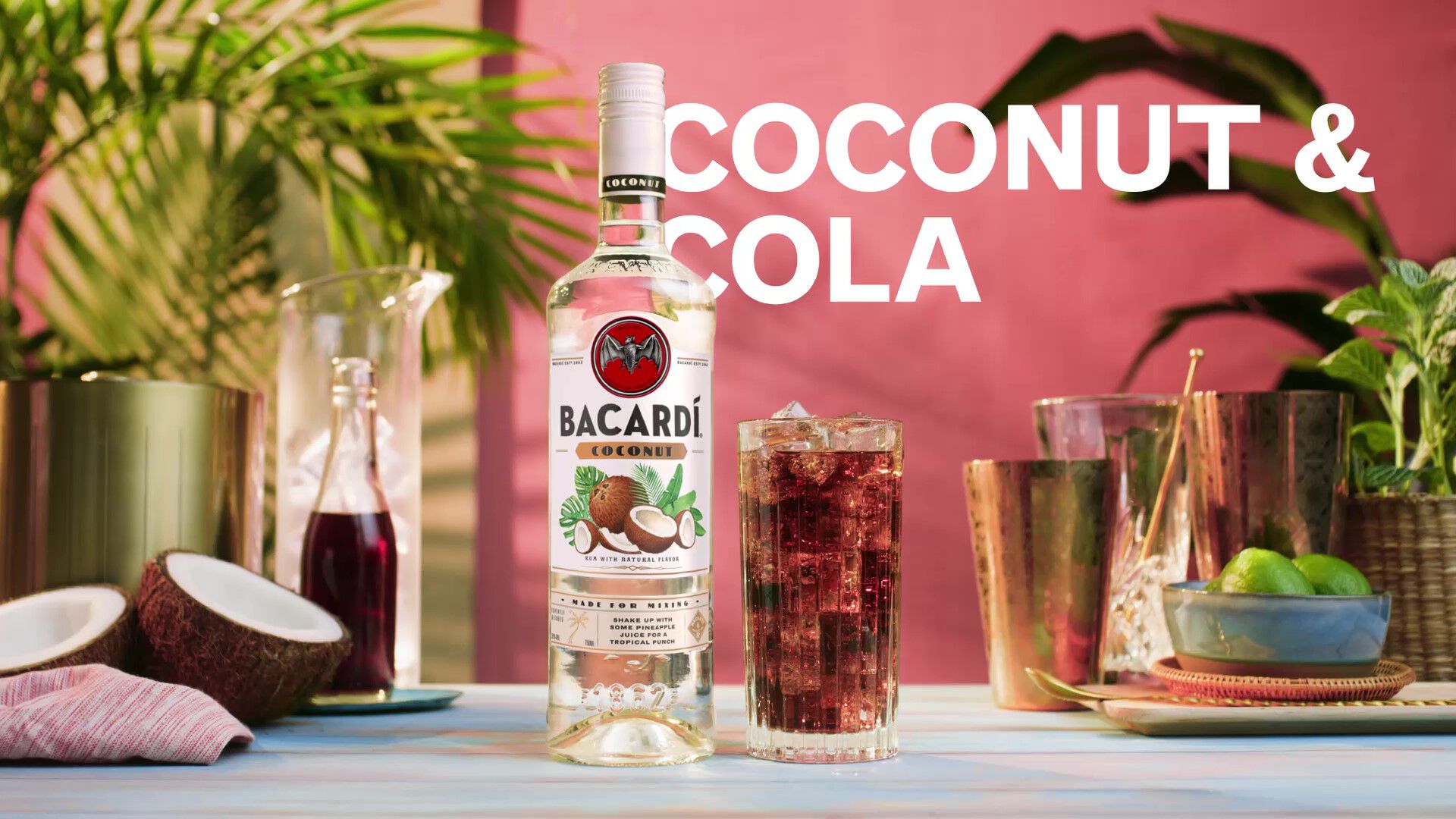 2. Schenk er de BACARDÍ Caribbean Spiced rum en de cola bij.