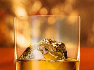 - Giet Bacardí Gran Reserva Diez rum over een groot ijsblok.