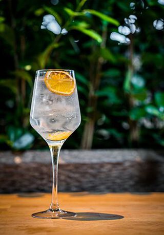 - Maak de gin en tonic af met een blaadje basilicum en geef het geheel een zachte roer met een lepel.