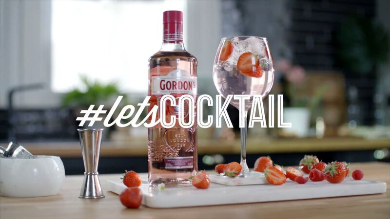 Vul een glas tot de rand met ijs. Schenk 50 ml Gordon's Pink Gin in en vul aan met 150 ml tonic of limonade. Garneer je cocktail met aardbeien of andere verse rode vruchten en klaar!