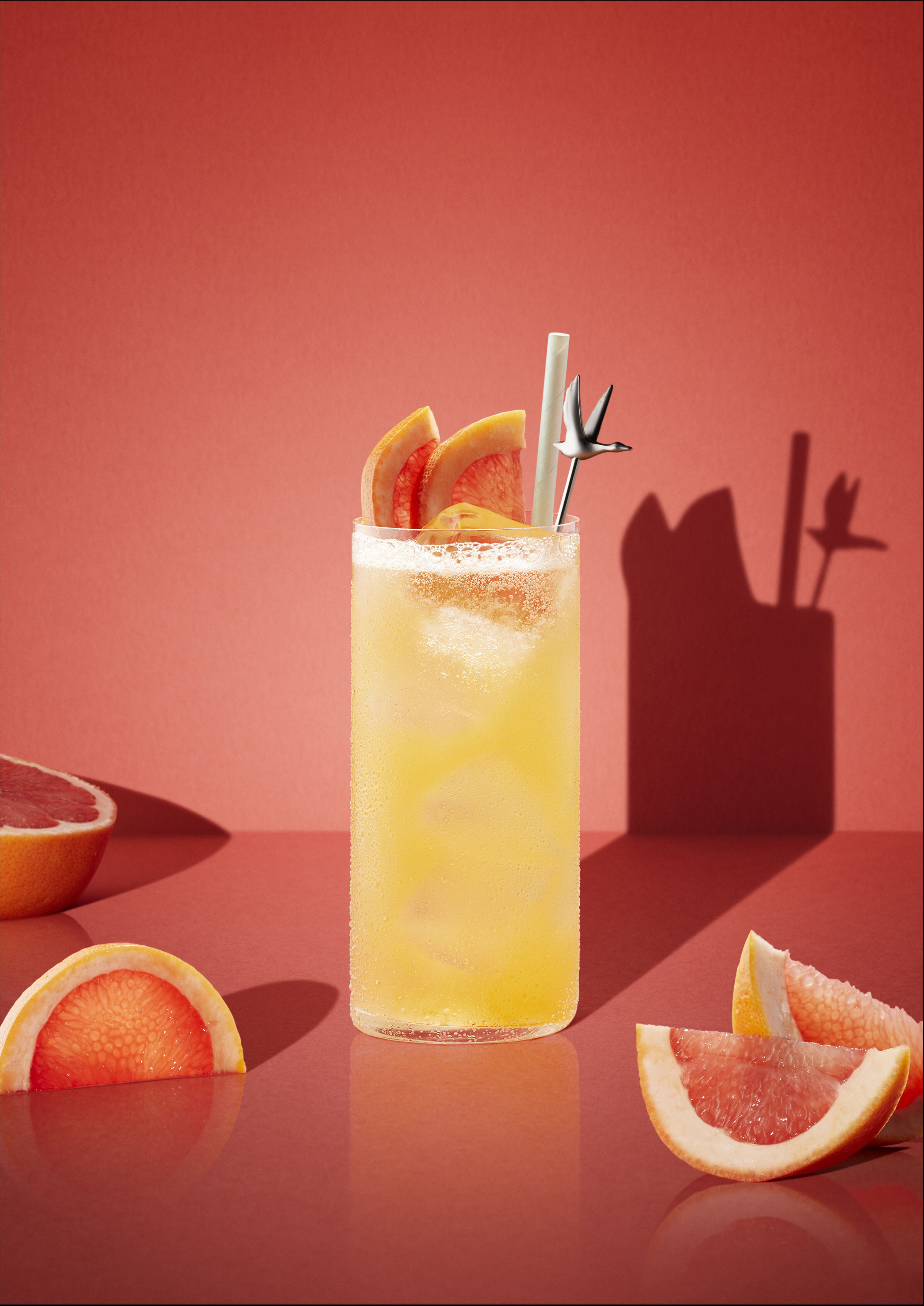 - Voeg de ingrediënten toe aan een longdrink of wijnglas.