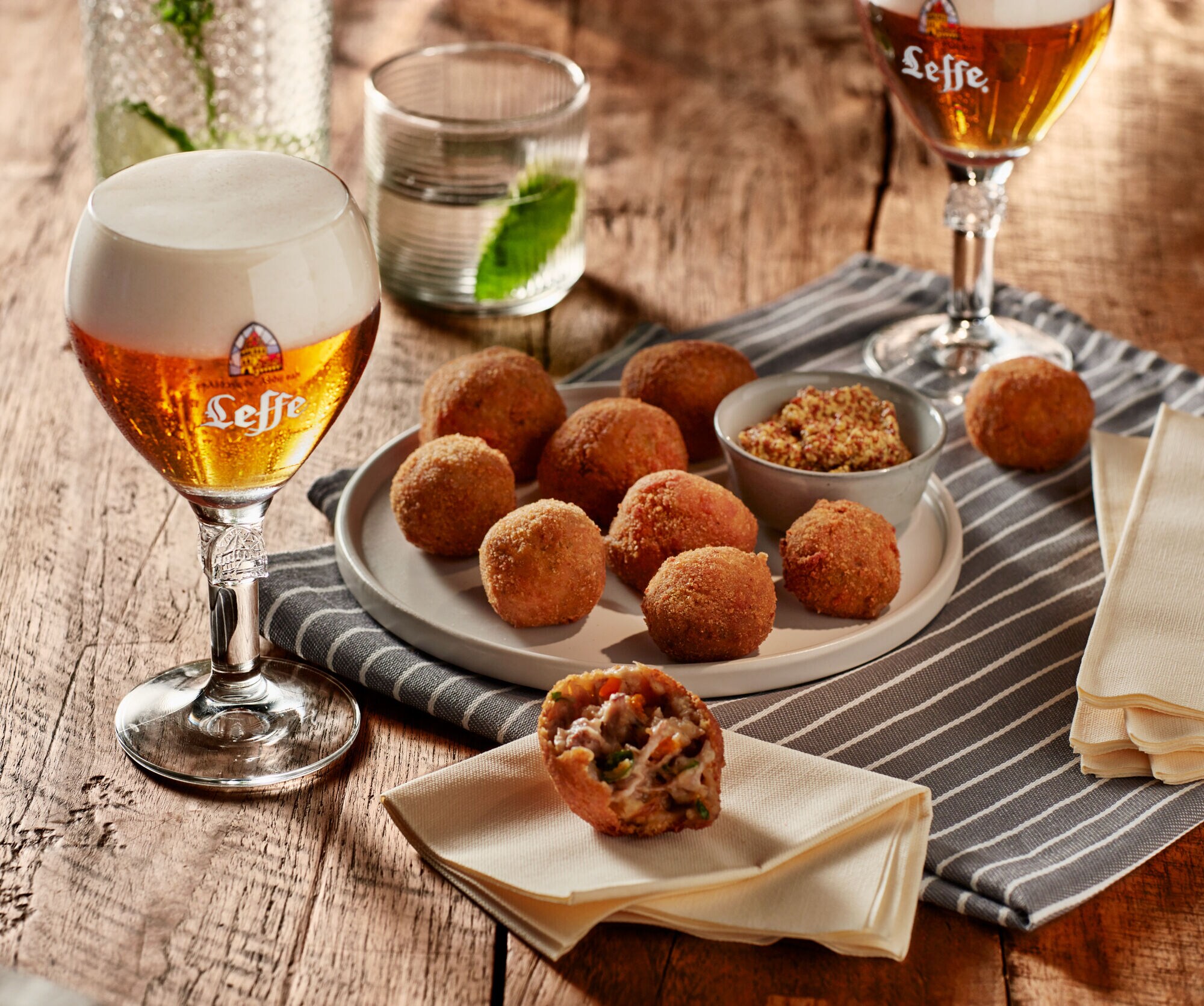 Leffe gaat heel goed samen met borrel en mooie stoofgerechten waaronder de Leffe Stoofvlees bitterbal ontwikkelt met de Bourgondiër.