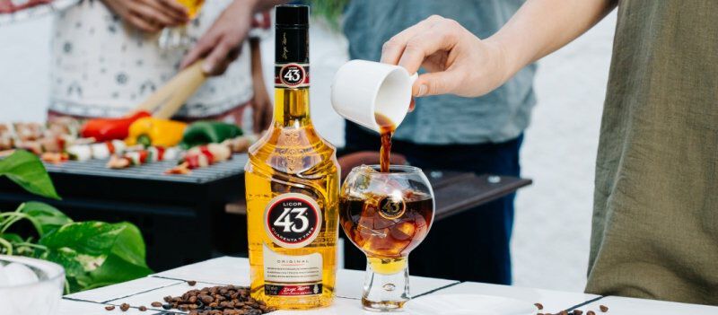 - Schenk de espresso over het ijs bij de Licor 43 Original