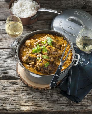 - Voeg eventueel naar smaak wat zout toe. Bestrooi met de cashewnoten en munt. Lekker met witte rijst. kip in witte wijn met gember en kardemom.