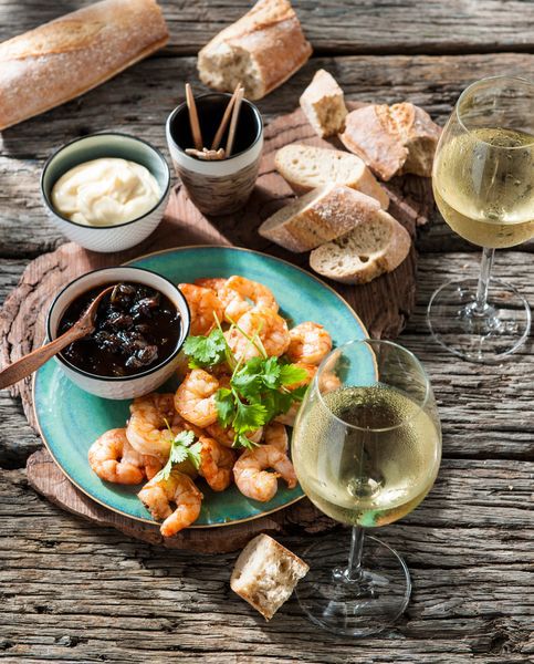 Garnalen in pittige witte wijn-pimentonsaus