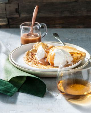 - Vul de crêpes met een paar ijsbolletjes en sla dicht. Giet er wat van de saus over.