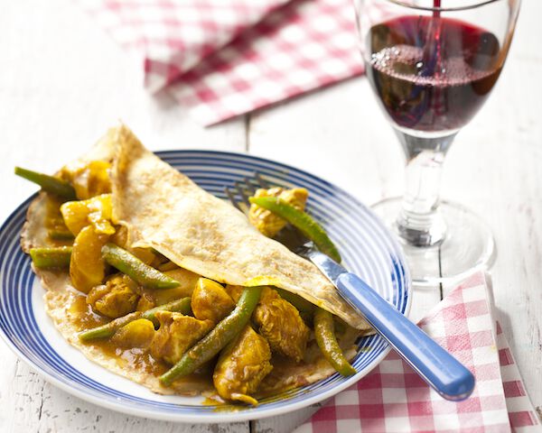 Surinaamse kip-kerrie in pannenkoek
