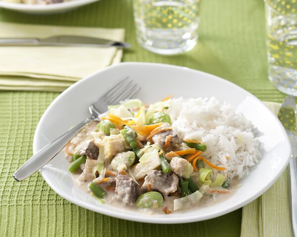 - Schep het vlees-groentemengsel op de borden. Serveer met rijst. Snelle variant: gebruik een runderbouillonblokje om de bouillon te maken. Dan gebruik je ook geen vlees bij stap 3.
