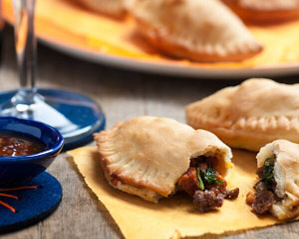 - Bedek een bakplaat met bakpapier. Bak de empanadas in ongeveer 20 minuten gaar en bruin. Serveer warm of op kamertemperatuur.