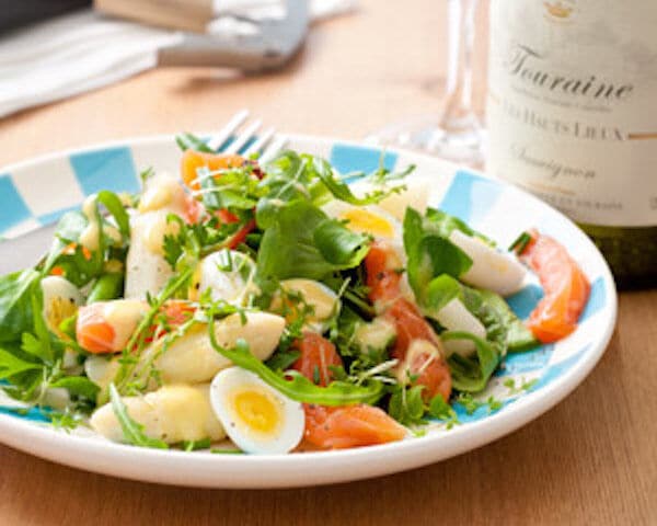 Aspergesalade met rauwe zalm en kwarteleitjes - paasgerecht