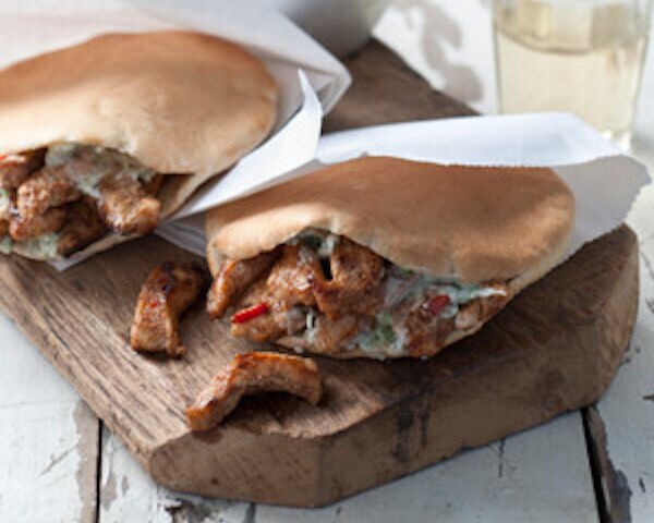 - Vul de pitabroodjes met de kipfilet en serveer met de raita.