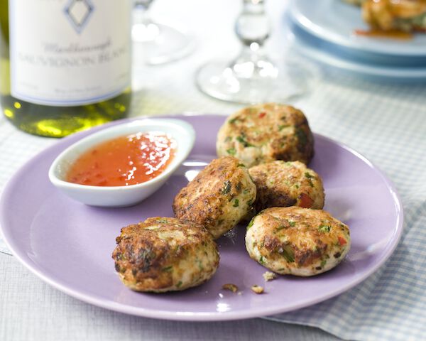 - Verhit de zonnebloemolie in een koekenpan. Bak de viskoekjes in porties in ca. 3 à 4 minuten gaar en goudbruin, keer ze halverwege. Lekker erbij: zoete chilisaus of komkommersalsa.