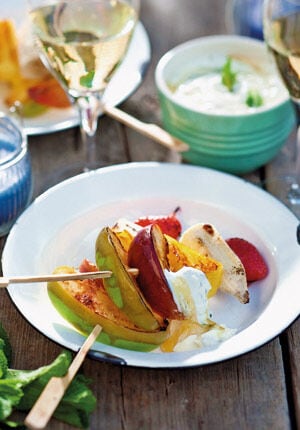 - Rijg het fruit aan de spiesen en leg ze daarna op een schoon en ingevet BBQ-rooster.