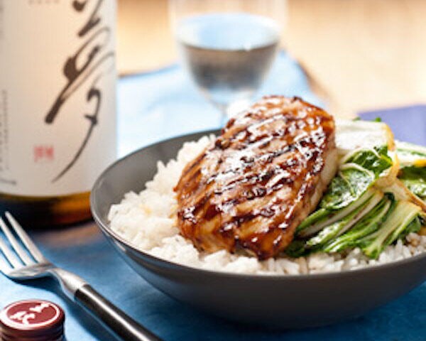 - Verdeel de rijst over de borden. Leg de kipfilet op de rijst en daarnaast de paksoi. Lepel er als laatste wat marinadesaus over.