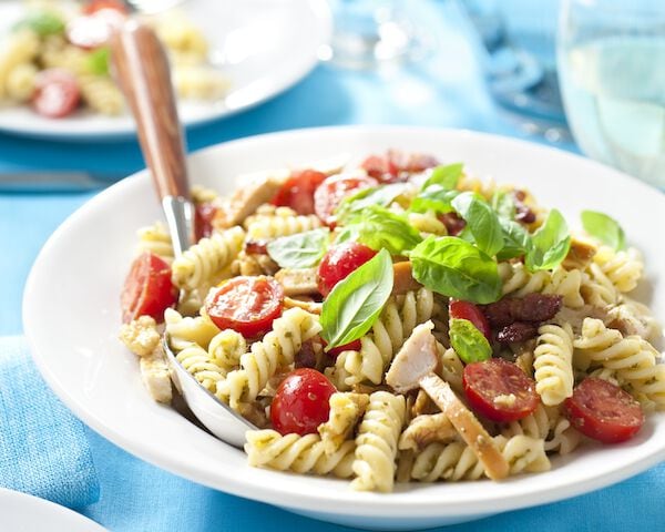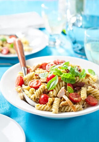 - Kook de pasta gaar in ruim water met wat zout. Spoel af met koud water en laat afkoelen.