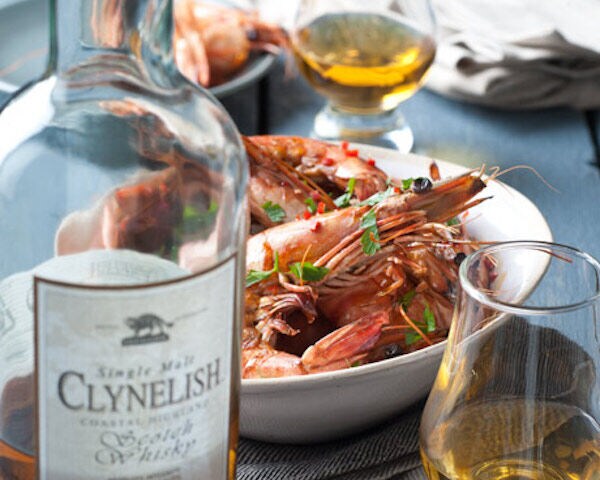- Meng in een kom het sap van de limoenen met de Clynelish 14YO de bruine basterdsuiker. Verhit op hoog vuur in een wokpan het limoen-whisky-suikermengsel 3 minuten. Voeg hier de gamba’s aan toe en wok het geheel ongeveer 6 minuten tot de gamba’s mooi roze zijn.