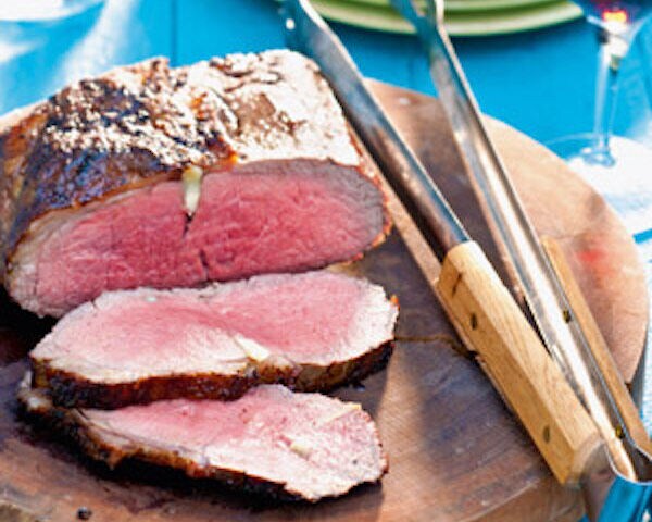 - Haal het vlees van de BBQ, wikkel het in aluminiumfolie en laat het 10 minuten rusten. Snijd het vlees in mooie dikke plakken. Serveer met de chiliboter. Lekker met gepofte aardappel en rode paprika.