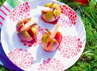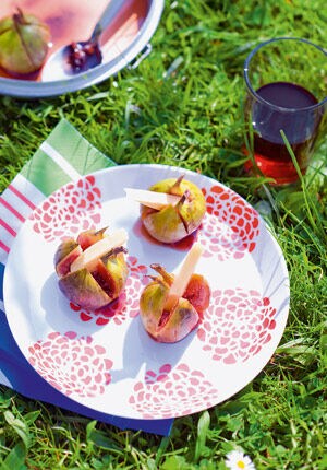 Verhit de port, de suiker en de steranijs in een steelpan en laat de suiker oplossen. Snijd de vijgen kruislings in en leg ze in een schaal. Schenk de port erover en laat de smaken gedurende een nacht intrekken. Haal de vijgen uit de port, dep ze droog en stop in elke vijg een stukje belegen kaas. Eet de vijg met schil en al.