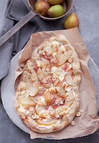 Flammkuchen is een typisch Elzasgerecht waar traditioneel zoete ui, crème fraîche en gerookt spek op ligt. Deze versie met beenham en mascarpone is weer net even anders en goede vrienden met een lekker glas volle Chardonnay.