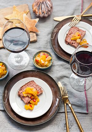 - Leg op elk bord 2 driehoekjes paté en serveer de mangochutney er in een apart schaaltje naast. Geef er vers getoast brood bij.