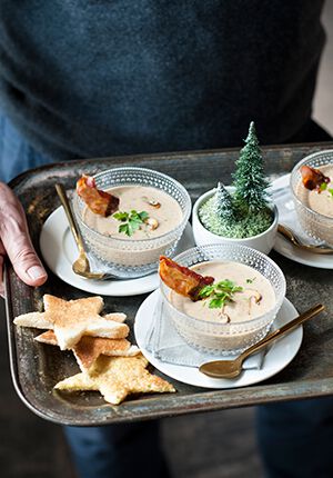 Paddenstoelen roomsoep met katenspek