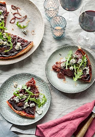 Tarte tatin van rode biet met blauwe kaas