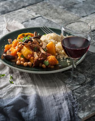 - Leg de paddenstoelen op de pompoenschotel en bestrooi met wat verse koriander. Serveer met rijst of een andere graansoort, zoals bulgur of parelgort.