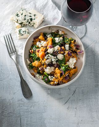 - Meng het bonen- mengsel door de aardappelpuree en breng op smaak met peper en zout. Schep op vier borden en verdeel de roquefort erover.