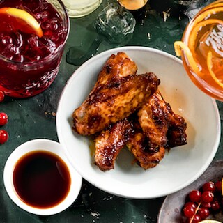 Doe 1 teen geperste knoflook, 30 g bruine suiker, 2 el ahornsiroop, 50 ml ketchup, 1 tl gerookt-paprikapoeder, 1 el extra vergine olijfolie, een snufje cayennepeper en 50 ml appel - azijn in een pannetje en breng aan de kook. Laat zachtjes inkoken tot een beetje kleverige saus, dit duurt ca. 8 min. Laat afkoelen. Doe 12 kippen - vleugeltjes in een ovenschaal waar ze ruim in kunnen. Bestrooi ze met wat zout en meng de saus erdoor. Laat 25 min. marineren. Verwarm ondertus sen de oven voor op 200 °C. Bak de kippenvleugeltjes in het midden van de oven in ca. 20 min. gaar en bruin.