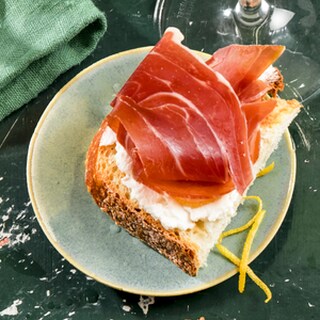 BRUSCHETTE MET CITROENRICOTTA EN RAUWE HAM