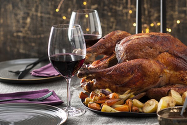 - Braad de kalkoen volgens berekende tijd of tot de kernthermometer 85 °C aangeeft.