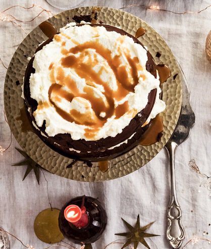 - Schenk als laatste de whisky-karamelsaus eroverheen