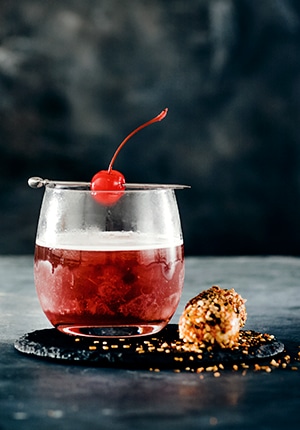 KWARTELEITJE + TOGAROSHI SEASONING met een Manhattan