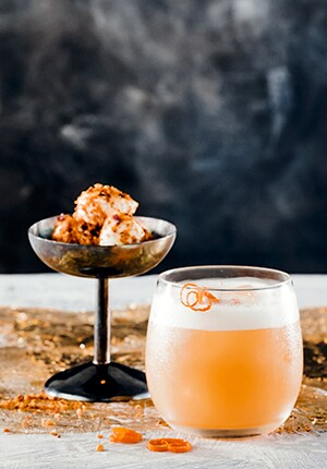 MOZZARELLABALLETJE MET AMANDEL-PAPRIKA-CRUNCH met Amaretto Sour