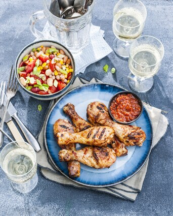 - Gril in ca. 1 uur tot de kerntemperatuur van de kip 70 °C is. Dit kun je meten met een vleesthermometer. Draai regelmatig.