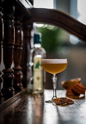 - Strain de cocktail vervolgens met zowel een strainer als een fine strainer in het glas.