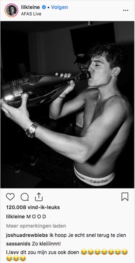 Champagnehuizen zijn vaak hartstikke trots op hun beroemde fans. Het merk Pol Roger gaf de illustere staatsman Winston Churchill zelfs zijn eigen fles: Cuvée Sir Winston Churchill. Misschien hoopt Nederlandse rapper Lil Kleine ook wel op zoveel erkenning. Waarom poseert hij anders steevast op Instagram met een fles Dom Perignon of Armand de Brignac in zijn hand?