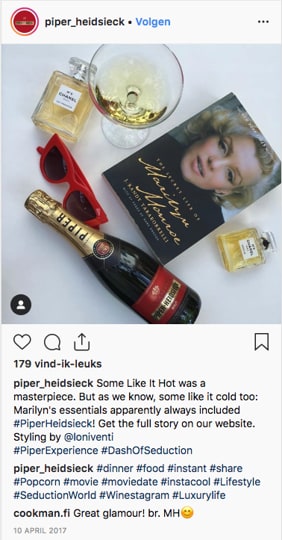 Champagne en de filmwereld: ze gaan al jaren hand in hand. Wie weet liet Beyoncé zich inspireren door Marilyn Monroe? Ook over deze iconische actrice wordt namelijk gezegd dat zij eens een bad liet vollopen met 350 flessen champagne. Grote kans dat het hier om Monroe’s favoriete merk ging: Piper Heidsieck.
