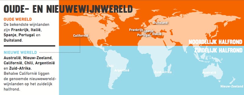 Kort door de bocht verwijst Oude Wereld naar de traditionele wijnlanden in Europa en Nieuwe Wereld naar alle landen daarbuiten. Bij de Oude Wereld horen landen als Frankrijk en Italië en bij de Nieuwe Wereld onder andere Australië, Chili en Zuid-Afrika.