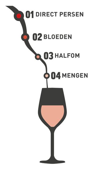 De schil van de blauwe druiven geeft kleur aan de wijn. Het sap dat uit druiven komt is namelijk altijd kleurloos. De wijnboer bepaalt of de wijn uiteindelijk rood of roze wordt. Hoe hij dat doet? Door de blauwe schillen heel even in contact te brengen met het kleurloze druivensap. Hoe lang de wijnboer dit doet bepaalt de intensiteit van de kleur roze. Hoe langer het contact, hoe donkerder de wijn. Zodra de wijnboer het lang genoeg vindt, wordt het goedje zonder schillen overgoten in stalen tanks en gist het sap zoals een witte wijn. Et voilà, een lekkere rosé wijn!